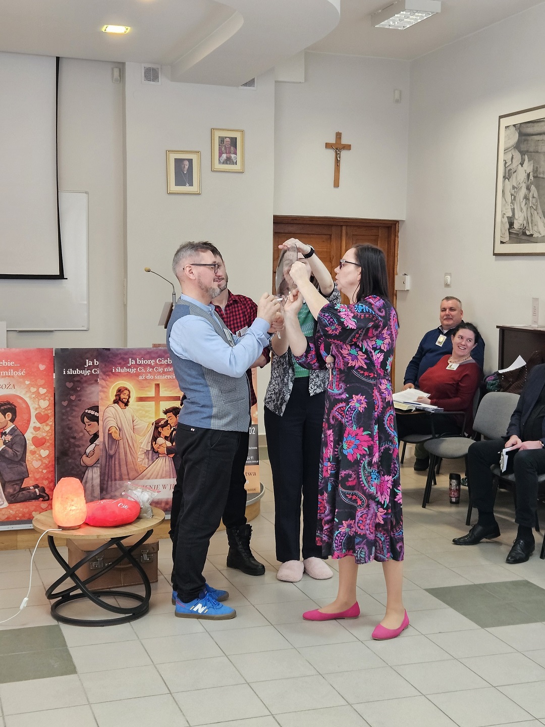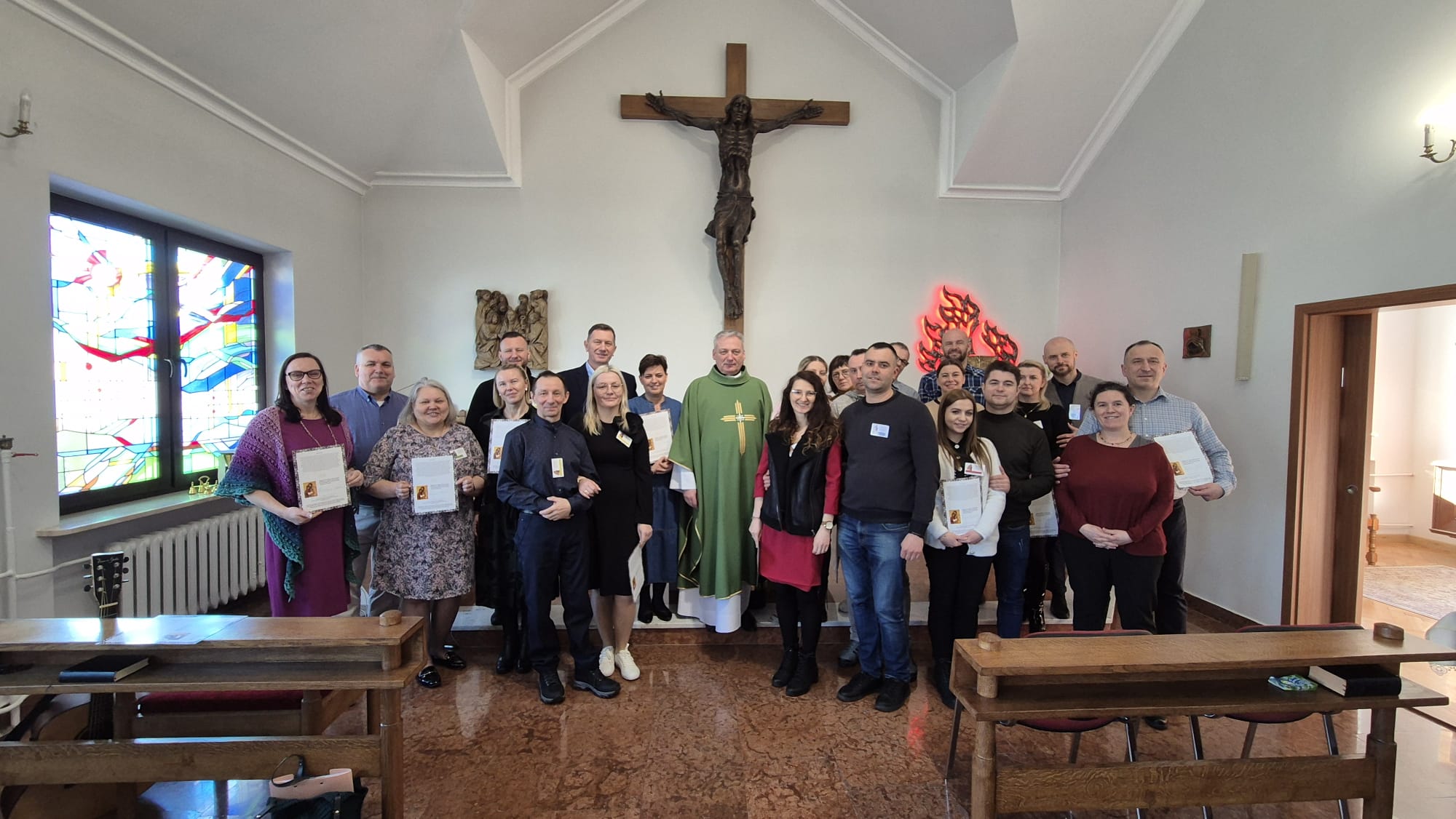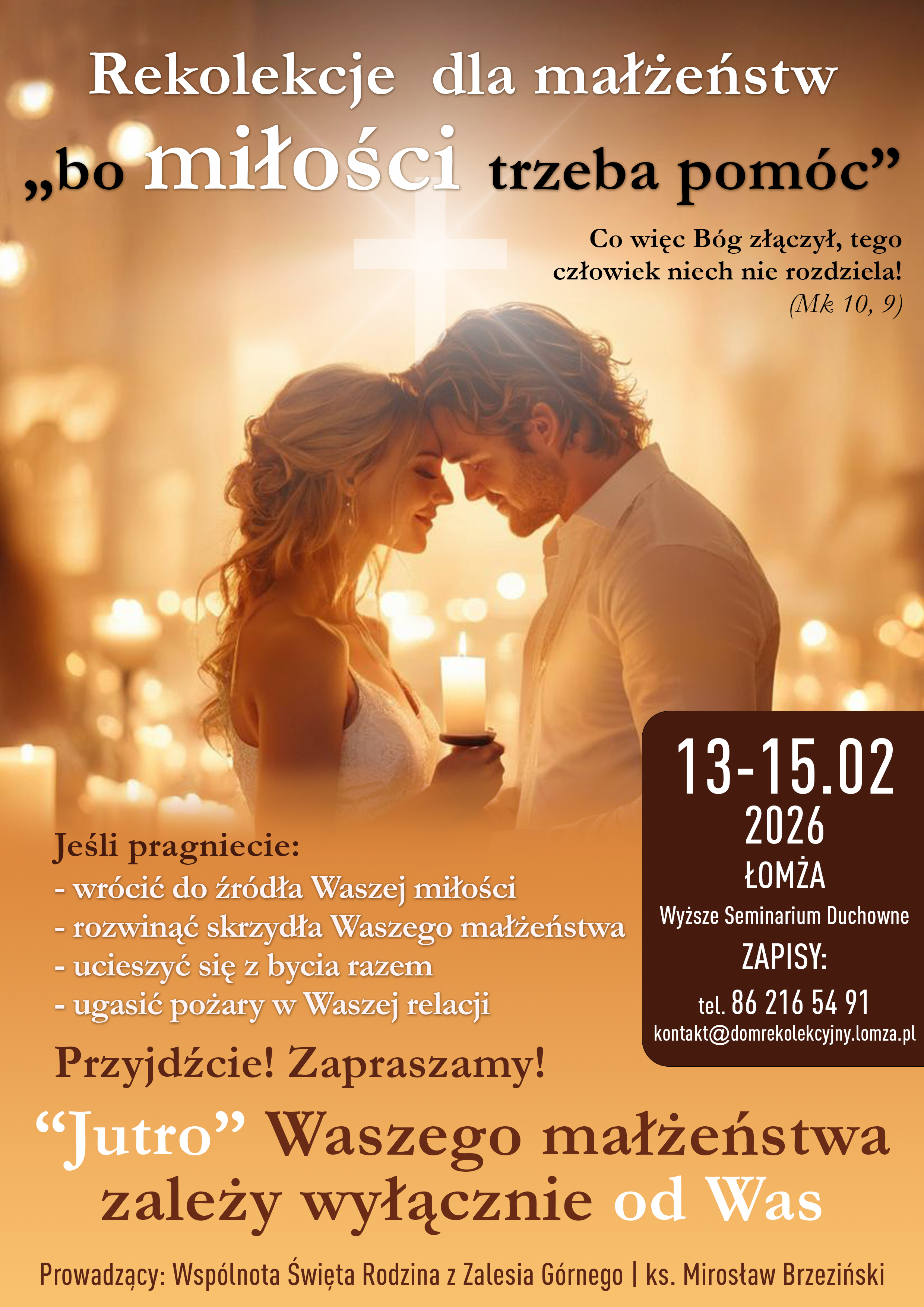 Mroźny weekend 13-15 lutego2026r. nie był przeszkodą dla małżeństw z diecezji łomżyńskiej, by przybyć do Domu Rekolekcyjnego św. Jana Pawła II przy Wyższym Seminarium Duchownym w Łomży na wyjątkowe rekolekcje małżeńskie "Bo Miłości trzeba pomóc" Dziękujemy wszystkim małżeństwom, uczestnikom rekolekcji za wspólne zachwycenie się pięknem drogi powołania do małżeństwa i rozważaniu istoty przyrzeczeń małżeńskich. Ekipa kursu, czyli trzy małżeństwa ze Wspólnoty Święta Rodzina doświadczyła szczególnej duchowości i Bożego prowadzenia w tym domu formowania się przyszłych księży diecezji Łomżyńskiej. Szczególne podziękowania kierujemy do ks. Mirosława Brzezińskiego za opiekę nad nami, posługę kapłańską na rekolekcjach i błogosławieństwo duszpasterskie. Nie znajdujemy wystarczających słów, aby opisać zaangażowanie i poświęcenie ks. Roberta Śliwowskiego w proces przygotowania i organizacji tego wydarzenia. Dziękujemy za przykładną gościnność, dobroć serca i braterską troskę o każdy detal. Ufamy, że Duch Święty hojnie obdarzy nas wszystkich swoją łaską, o którą tak zgodnie w ten zimowy weekend prosiliśmy. Pan ma wielką moc. W nim cała nasza siła. Owocnego przeżywania czasu Wielkiego Postu! Amen.